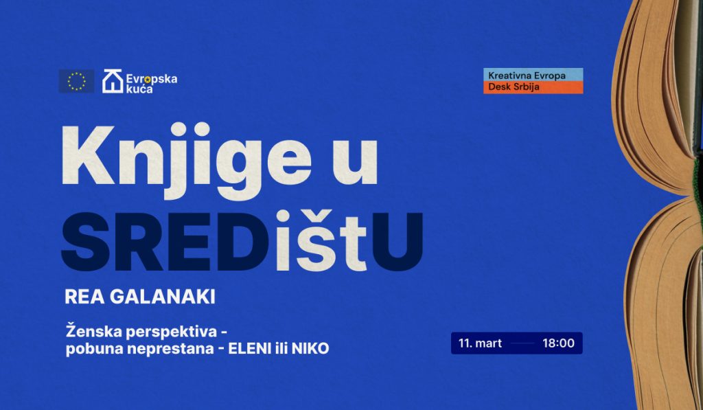 Serijal razgovora o savremenoj evropskoj ženskoj književnosti, posvećen prevodima podržanim kroz program Kreativna Evropa, nastavlja se razgovorom o romanu Eleni, ili Niko autorke Ree Galanaki, jedne od najznačajnijih savremenih grčkih književnica i dobitnice Velike nagrade za životno delo u okviru grčke Nacionalne nagrade za književnost (2023).